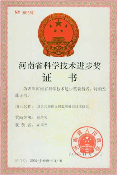 国家级获奖证书 省交通运输厅获奖证书 省科技厅获奖证书 其他奖项