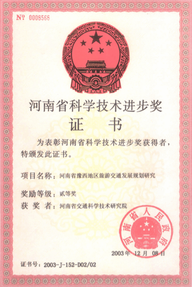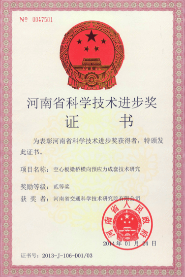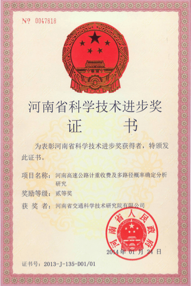 2003以来,公司科研项目获得各项奖励114项。其中,河南省科技进步一等奖1项,二等奖10项,三等奖8项;河南省交通运输科学技术进步一等奖31项,二等奖44项,三等奖10项;获得河南省优秀工程咨询成果一等奖4项;郑州市学术创新成果展三等奖1项;中国公路学会科学技术二等奖1项,三等奖2项;科学技术普及成果一等奖1项;中国交通运输协会科学技术奖1项。