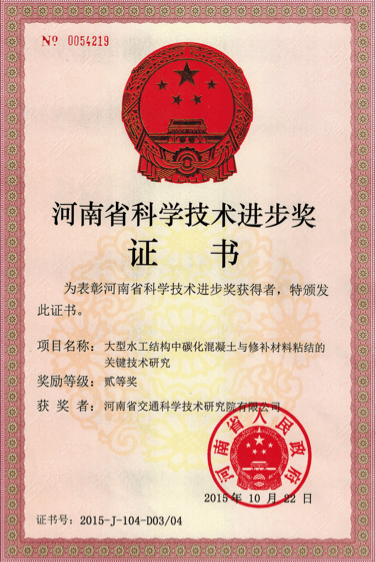 2015年大型水工结构碳化混凝土与修补材料粘结的关键技术研究二等奖.png